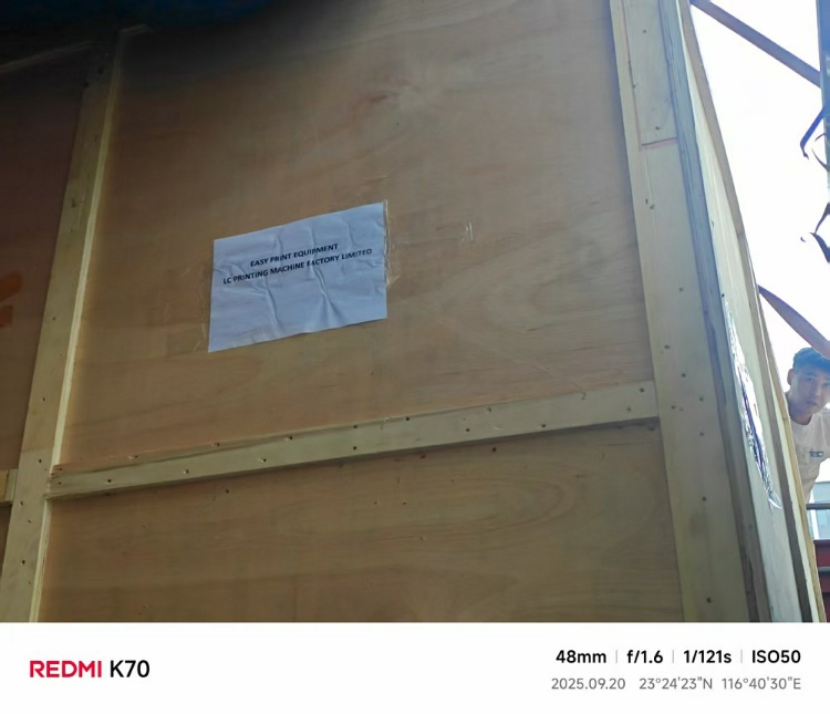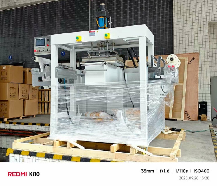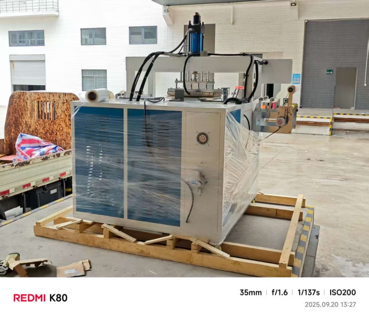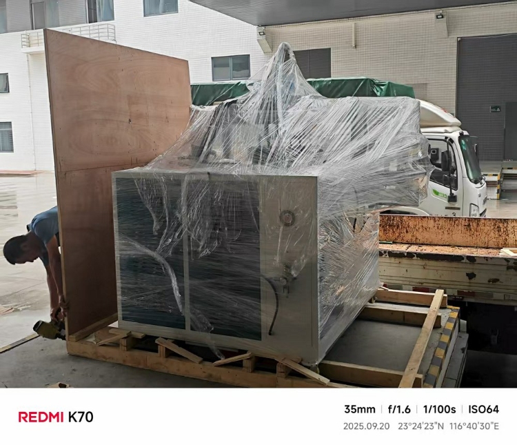 Dated on 20th,Sep.2025, a complete set of large size hot stamping machine on 1100L dustbins for max. printing size at 550*300mm was being well packed and delivery to the forwarder’s warehouse.
