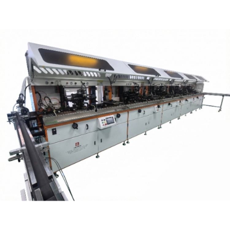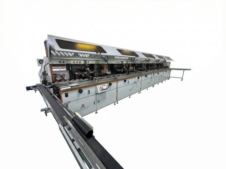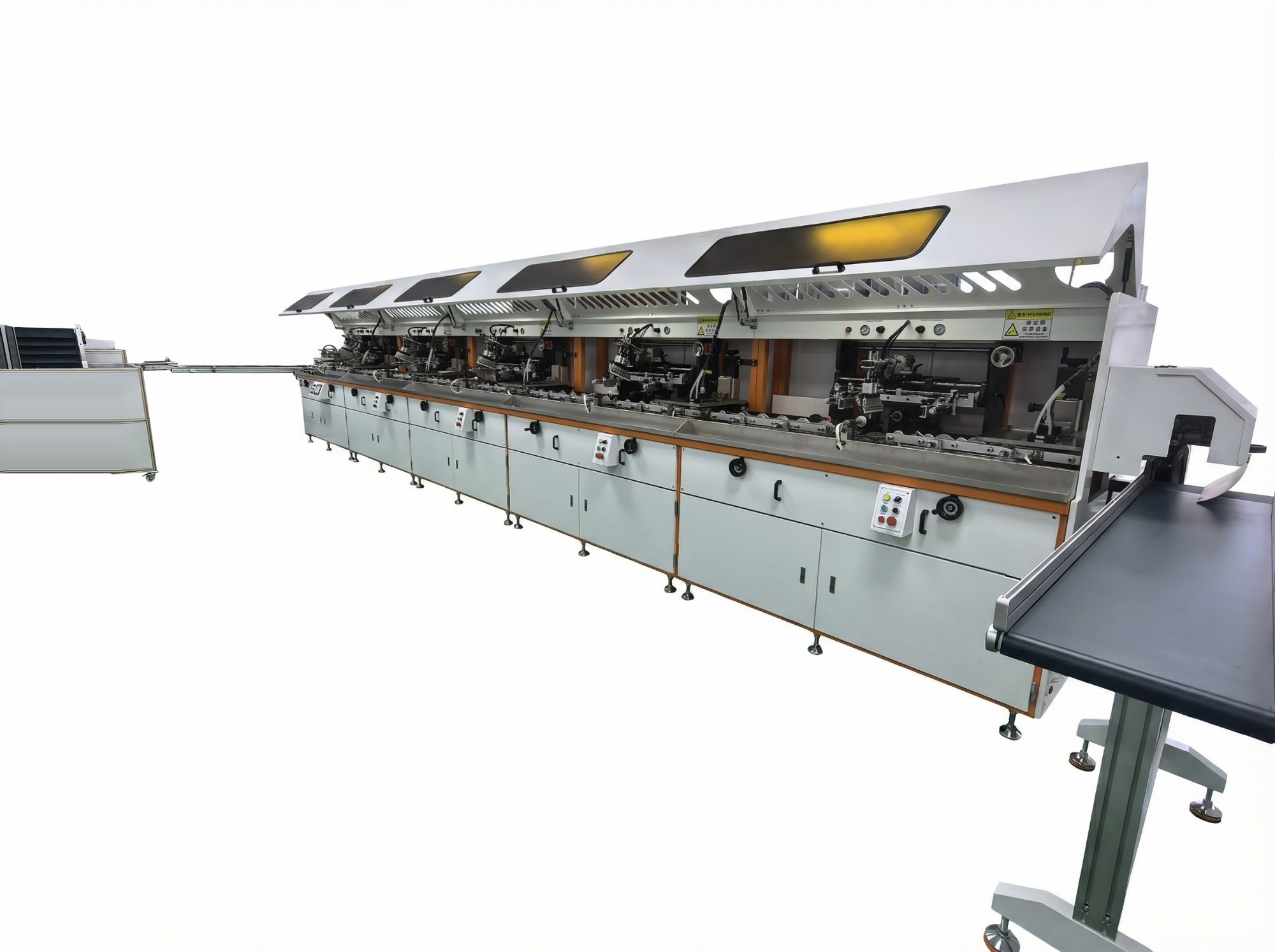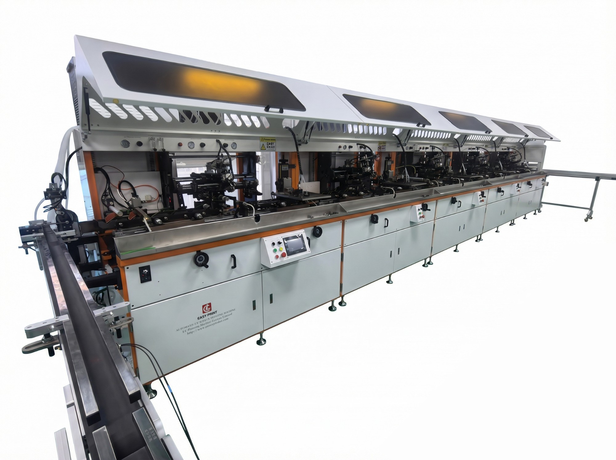 New Upgraded 5 Colors Automatic Silk Screen Printing Machine With Advanced LED Curing system, compare with the traditional pneumatic driven automatic UV silk screen printing machine, this machine is upgraded with mechanical driving system which is fitting on all those round, cone, oval, flat, square shape bottle and container’s silk screen printing.