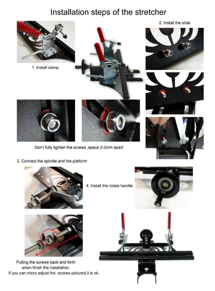 3. Keeping the hand-wheel in the inside of the screw rod will assure better stretching effects.